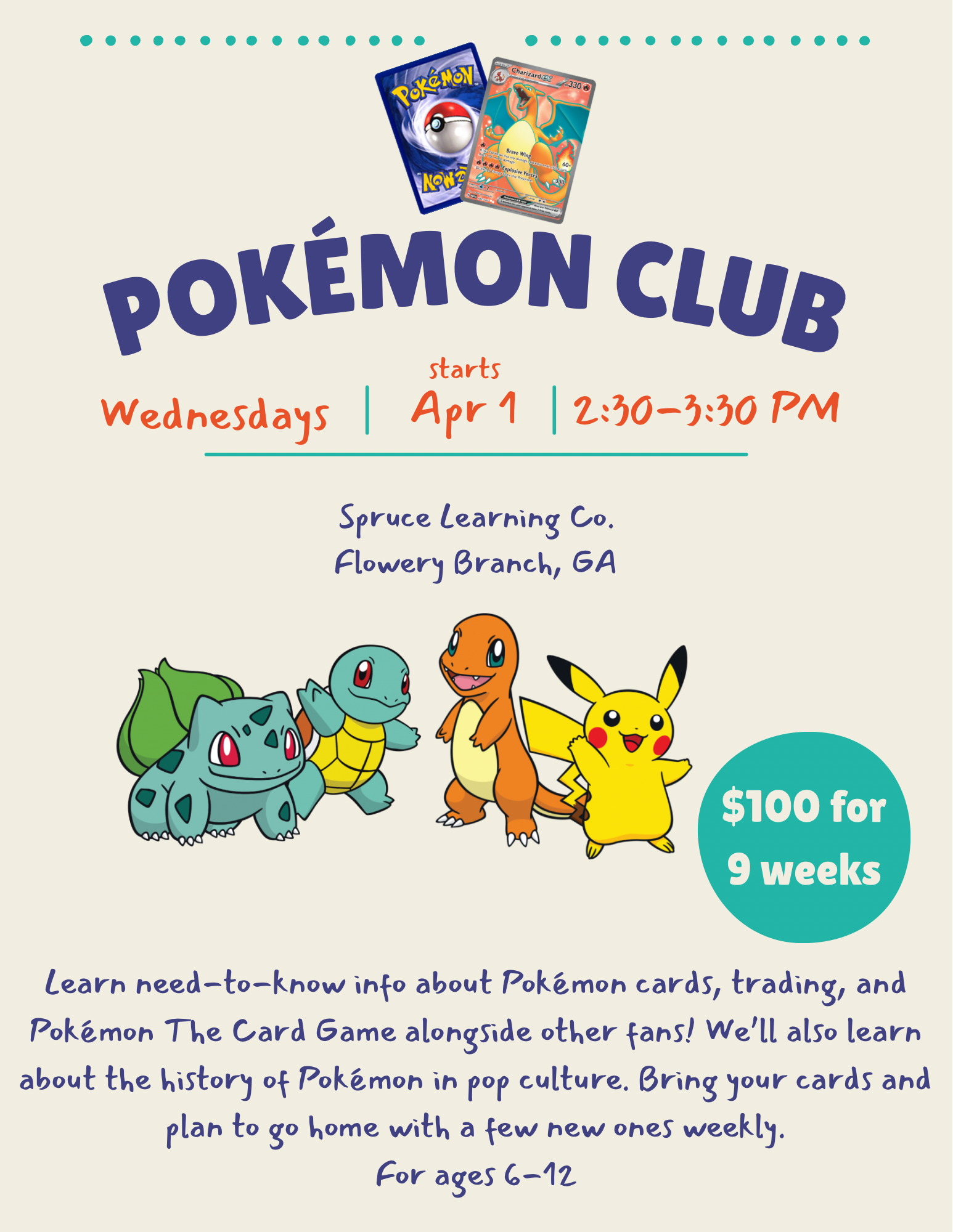 Learn need-to-know info about Pokémon cards, trading, and Pokémon The Card Game (TCG) alongside other fans! We'll also learn about the history of Pokémon in pop culture. Bring your cards and plan to go home with a few new ones weekly. Learners will have the option to trade their cards with friends and learn how to play TCG. For ages 6-12.